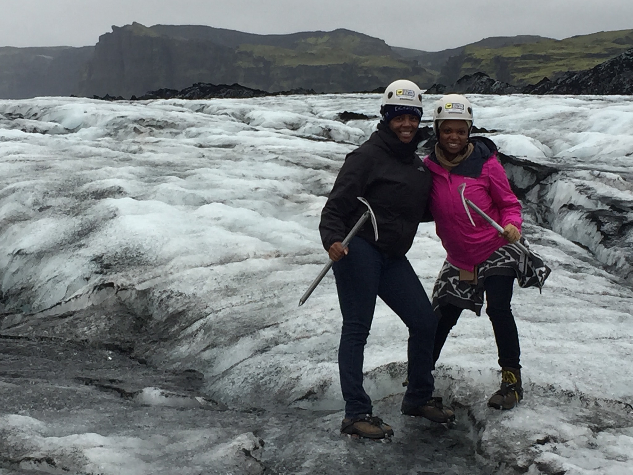 We then continued the 2 ½ hour journey to the Solheimajokull glacier which is a part of Mýrdalsjökull, Iceland’s fourth largest glacier that covers the infamous volcano Katla. After strapping on our crampons and grabbing our ice picks, we were ready to go. It was about a 30 minute hike to the glacier and then we were able to spend another hour on the glacier itself – both of which were pretty easy hikes. Although it was amazing to experience the glacier up close, it was heartbreaking to hear our guide explain that the glacier actually used to be a lot larger than it currently is but now melting rapidly because of global warming.