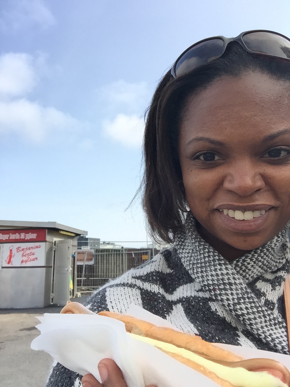 On my walk back to the hotel, I noticed a line at a food cart and couldn’t believe I ran into the famous hot dog stand Baejarins Beztu Pylsur! So of course I had to join the line and taste it for myself. The hot dog was about $3US/400 kronas which I charged to my credit card (they only take kronas or credit cards). I got one with everything (ketchup, sweet mustard, remoulade, fried onions, and raw onions) and I have to say it was good but not mindblowing as I was expecting.