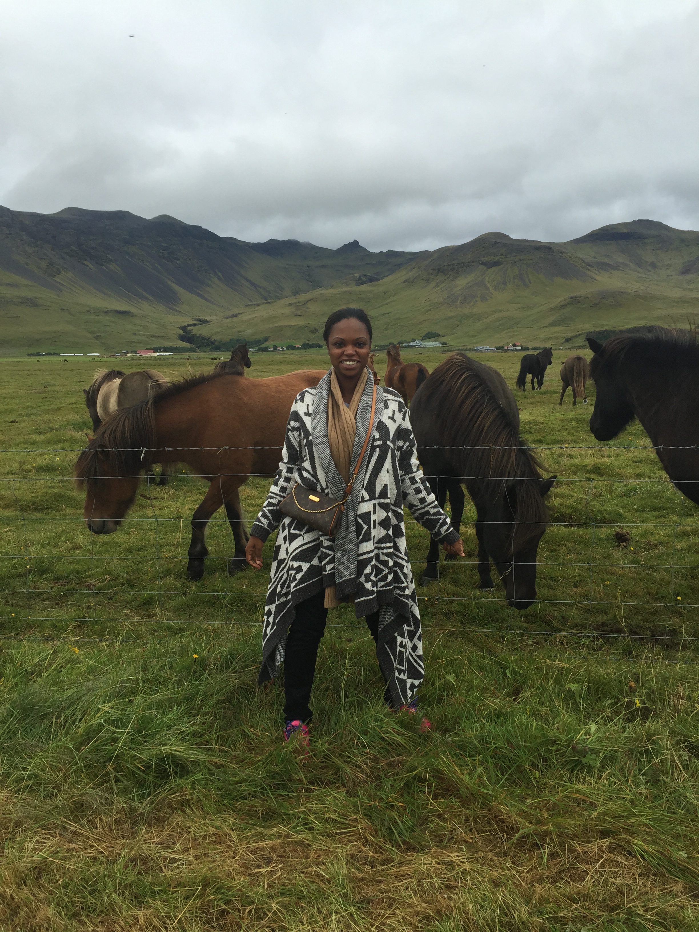 We were super excited for our “glaciers and waterfalls” tour (which we pre-booked through Extreme Iceland) since neither of us has been glacier hiking before. We left around 8am and there were three other solo travelers on the bus. On our way to the glacier, we saw a group of Icelandic horses (which was great because one of my “must do’s” while in Iceland was seeing an Icelandic horse up close!) and made a pit-stop to take pictures.