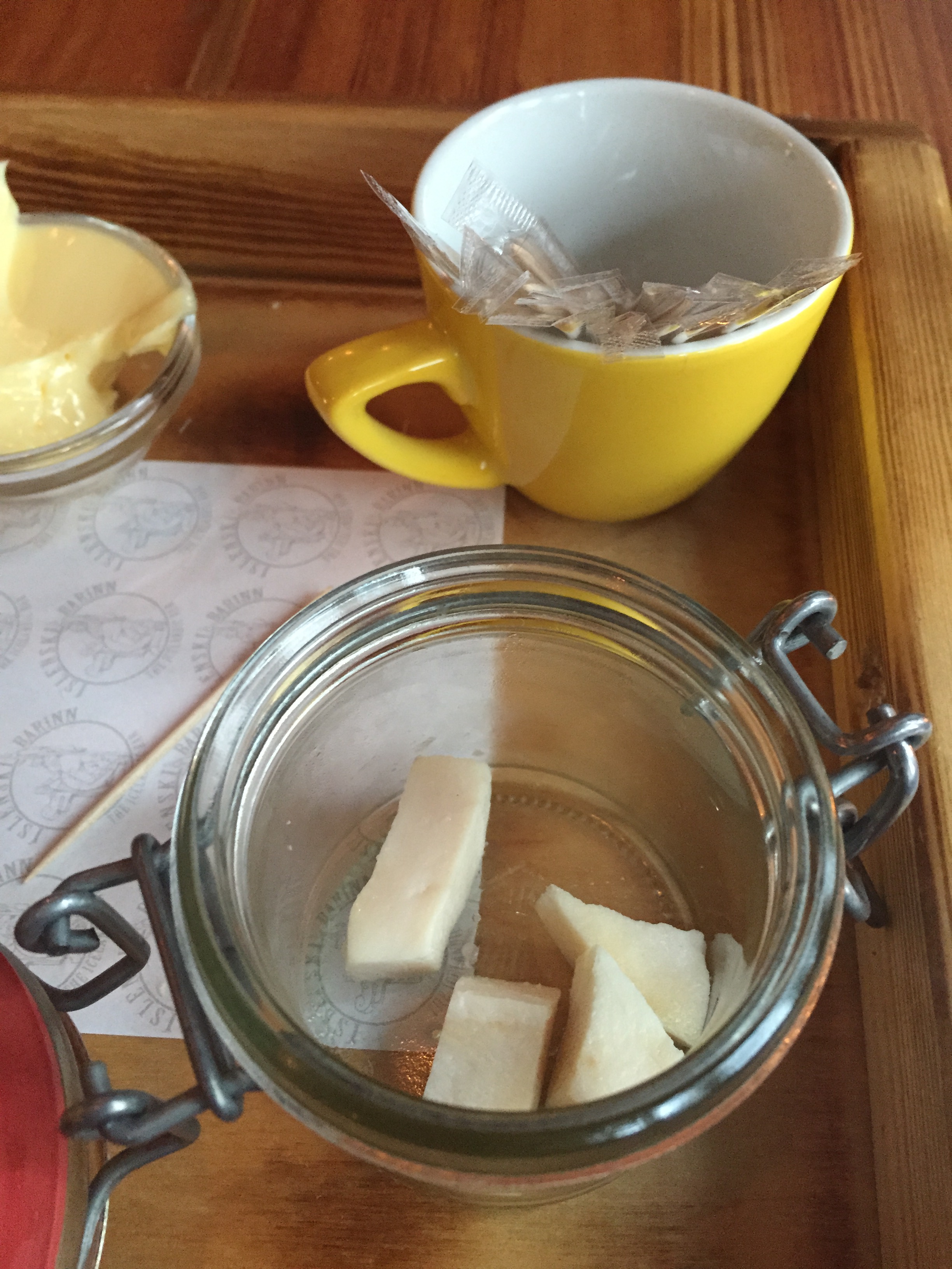 After a quick shower, there were sandwiches and fish soup available. We left shortly after and the bus dropped me back to the hotel. After some souvenir shopping along the famous Laugavegur street, I headed to Icelandic Bar for dinner and a drink. I ordered the fermented shark as an appetizer which I was told goes best with a shot of Brennivin vodka. While I wasn’t too crazy about the vodka, the shark (which I previously read wasn’t that great) was actually quite edible. I could only swallow two pieces of it (you get six in an order) but it certainly wasn’t as bad as I expected. I also had the reindeer burger which was really good (tasted a little like ostrich to me).