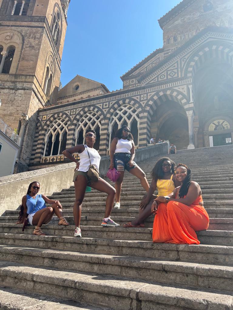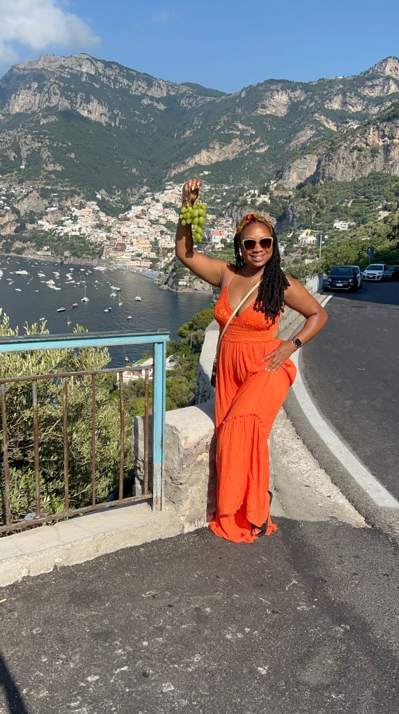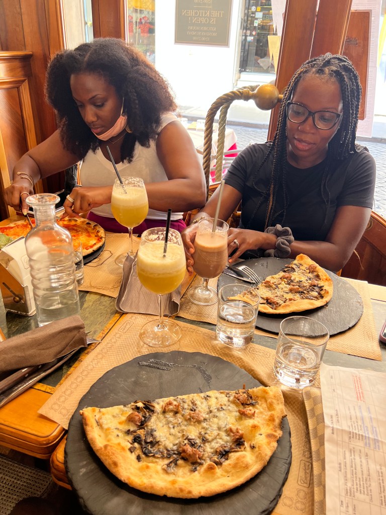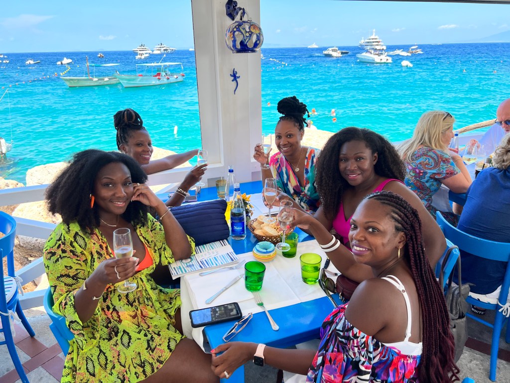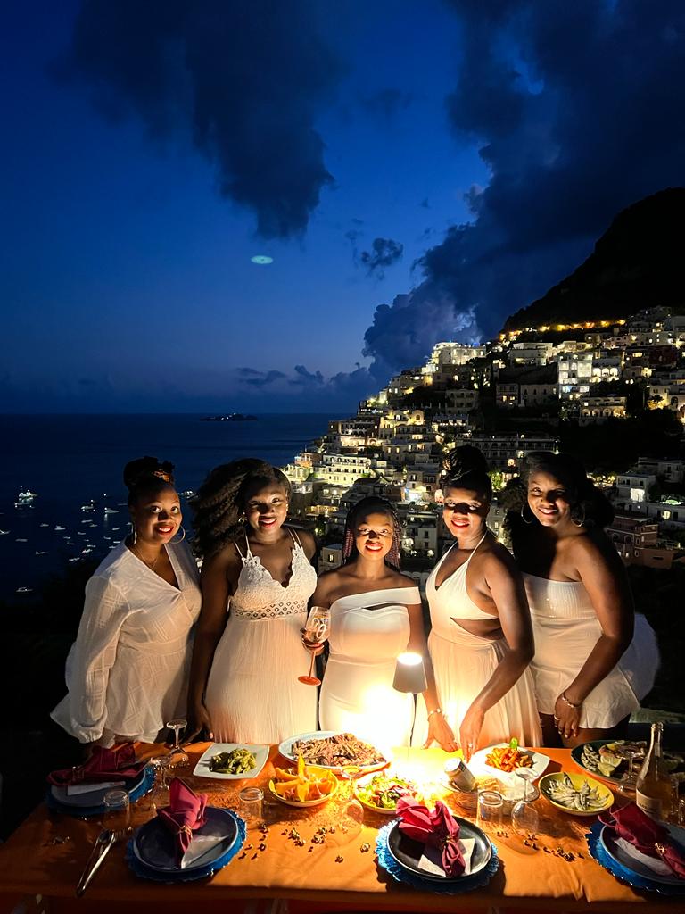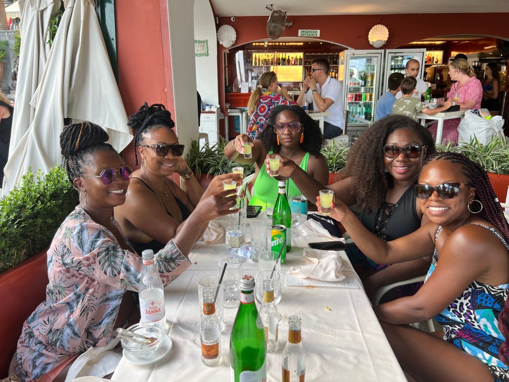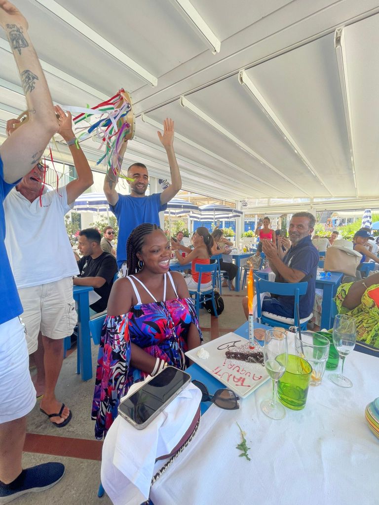Alas, we had dinner reservations at Le Tre Sorelle (right near the beach where we ate) so we had to head back down all of the stairs…le sigh. Tip: make sure you make reservations, especially in the summer because everywhere is extremely crowded. Thank goodness we had reservations because it was definitely packed when we arrived (albeit 30 minutes late but thankfully they held our table). We randomly met a solo black female traveler (who had been talking to Lesley while she was waiting for the table) and we decided to invite her to join us for dinner since she was by herself and would’ve had to wait awhile. The vibes at the restaurant were amazing and the owner even came over to chat with us. The food and cocktails were on point, and we were stuffed from the anchovies, melon with prosciutto, oysters, fresh mozzarella, octopus, veal, and sea urchin pasta. They even brought out a birthday sparkler for me!