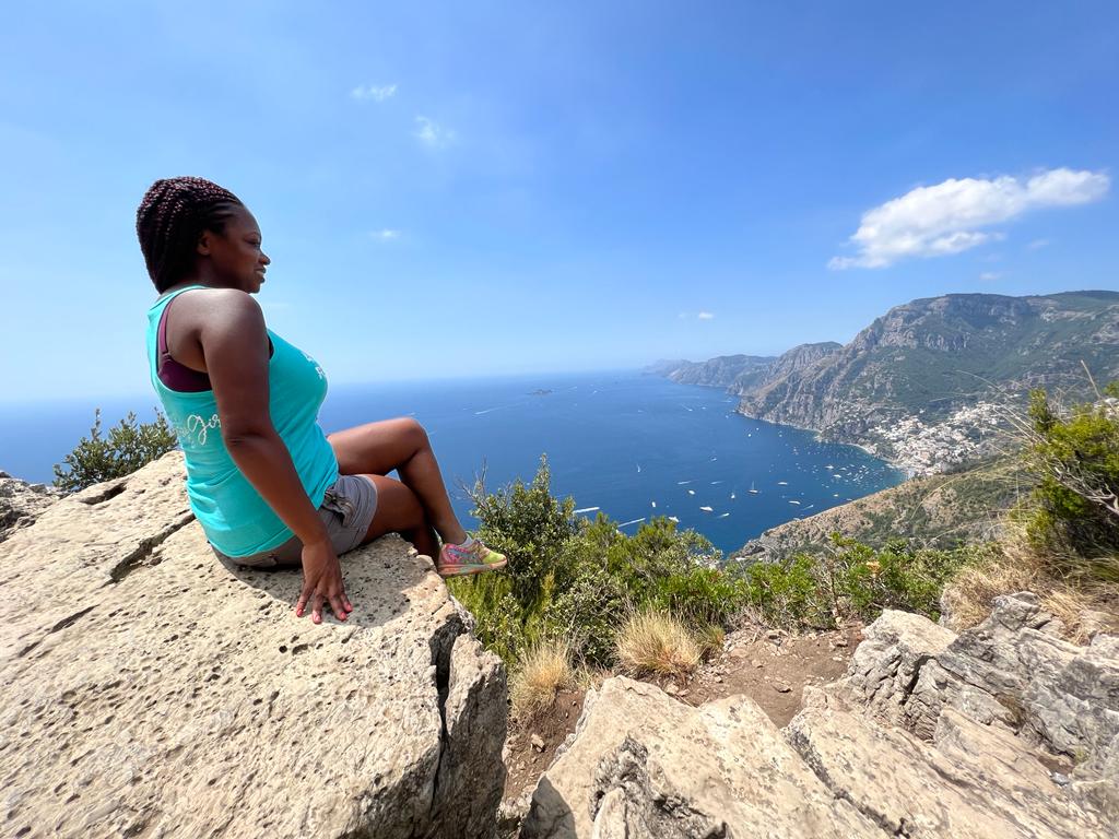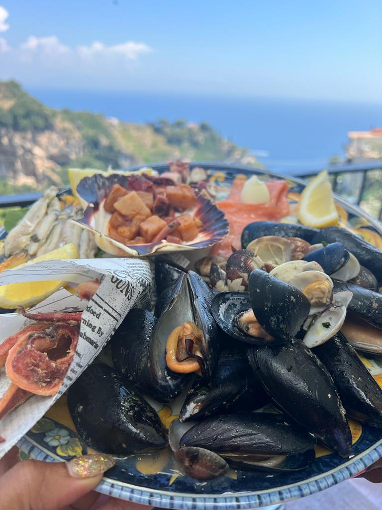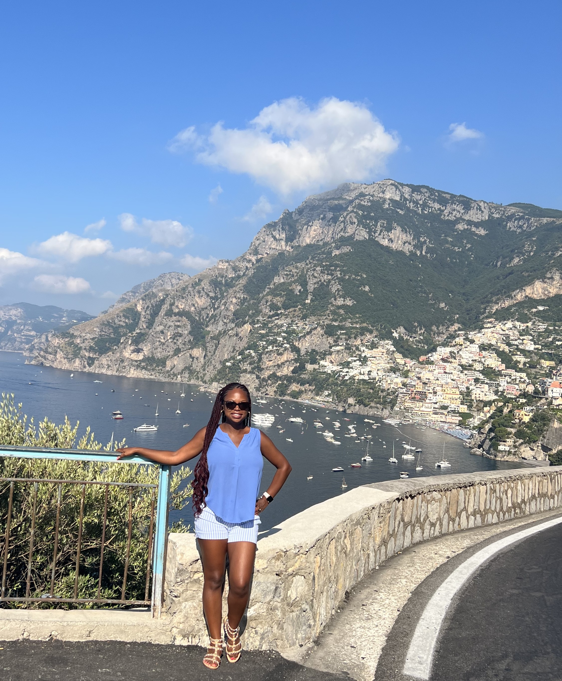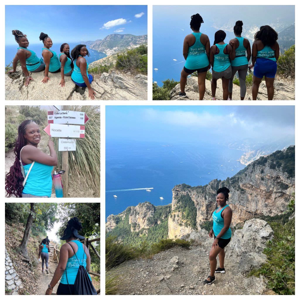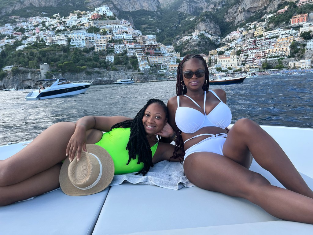 Alas, we had dinner reservations at Le Tre Sorelle (right near the beach where we ate) so we had to head back down all of the stairs…le sigh. Tip: make sure you make reservations, especially in the summer because everywhere is extremely crowded. Thank goodness we had reservations because it was definitely packed when we arrived (albeit 30 minutes late but thankfully they held our table). We randomly met a solo black female traveler (who had been talking to Lesley while she was waiting for the table) and we decided to invite her to join us for dinner since she was by herself and would’ve had to wait awhile. The vibes at the restaurant were amazing and the owner even came over to chat with us. The food and cocktails were on point, and we were stuffed from the anchovies, melon with prosciutto, oysters, fresh mozzarella, octopus, veal, and sea urchin pasta. They even brought out a birthday sparkler for me!