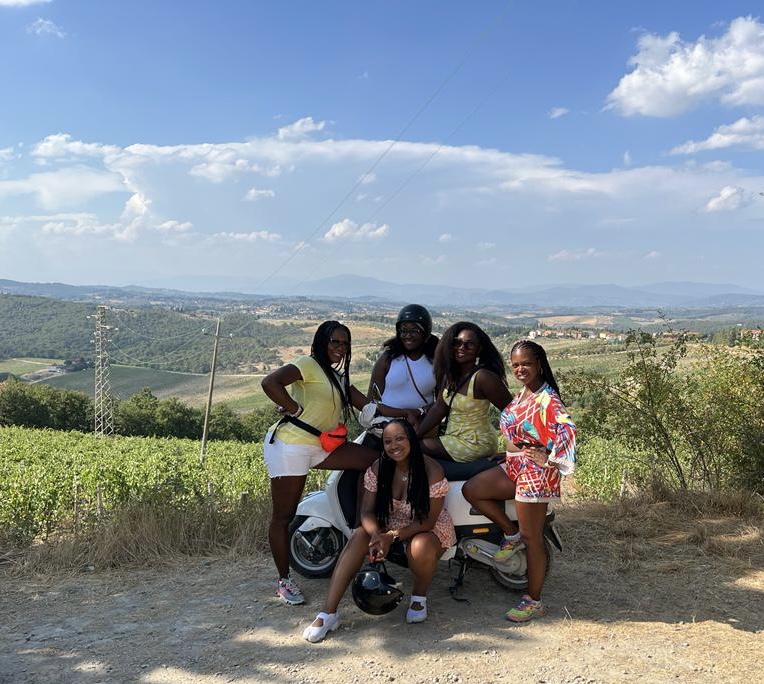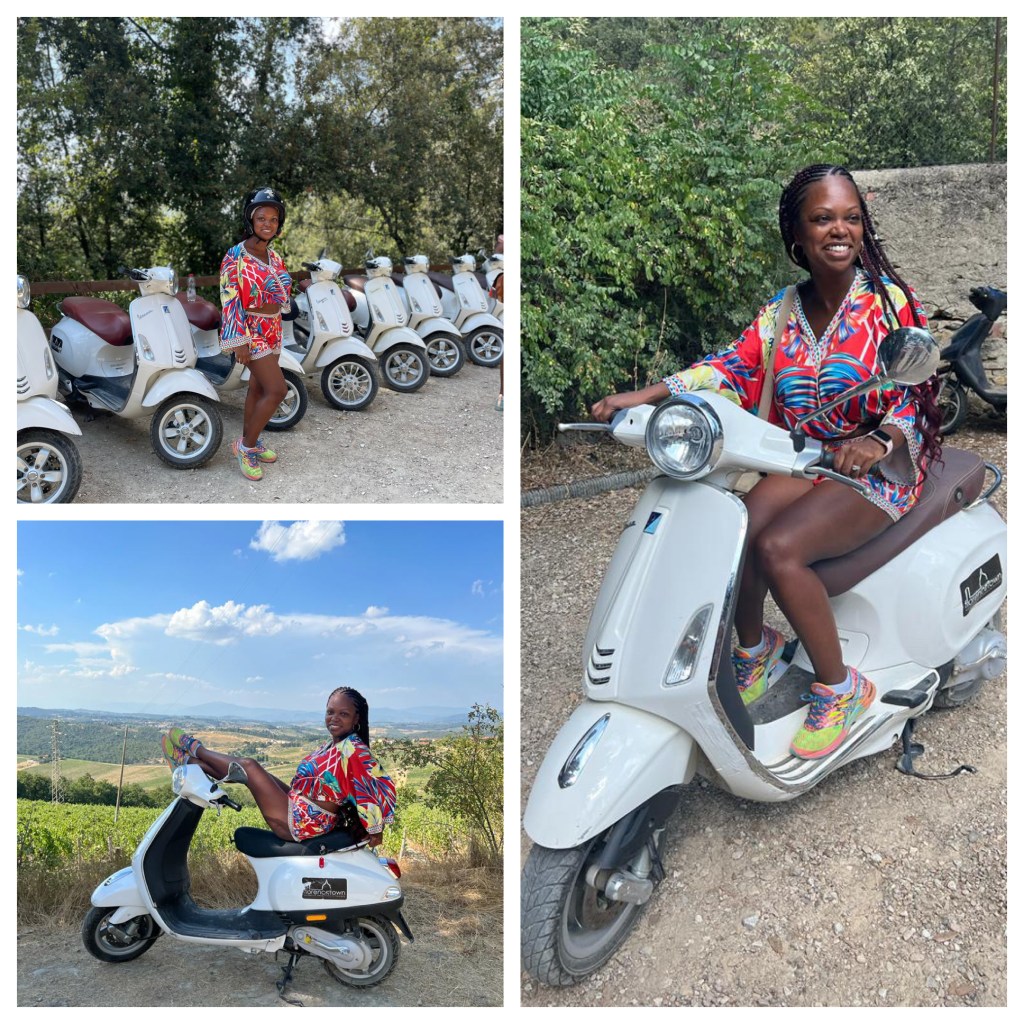 The five of us then squeezed into a taxi to reach the meeting point for (drumroll please!) our Vespa tour. After signing our life away, we boarded a van and drove 20 minutes to Chianti (a region known for its wine). First, we did a few practice runs on the vespas to make sure we could ride them…I clearly failed. So much so, that I had difficulty even getting the kickstand up! It definitely reminded me of that one time I tried to ride one 20 years ago in Miami and it didn’t go well (clearly time hasn’t helped my Vespa driving skills!). Anyway, those of us who failed the practice run (which was 4 out of the 5 of us), ended up riding in the tuk tuk for most of the way and/or on the back of one of the guide’s vespas.