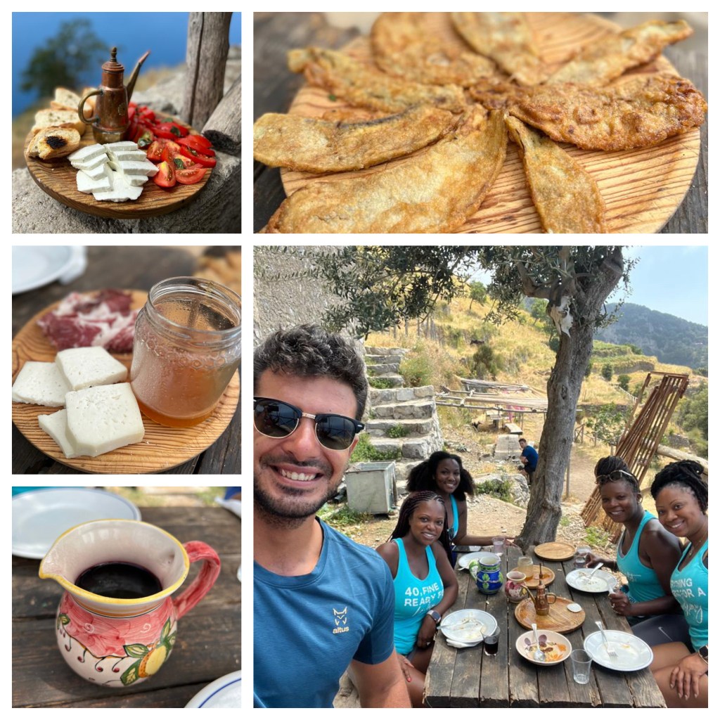 Giovanni, our guide, pointed out different things along the way and told us funny things like his uncle speaking “macaroni English” and stories about other tourists like the Germans who were so drunk, they used the “bathroom” in the garden of an upscale hotel! I don’t think any of us were paying attention fully though because we just wanted to get to the shepherd’s house (which took nearly two hours!). When we got there, we had fresh grilled bread with olive oil, tomatoes and basil, pickled zucchini, aged goat cheese with honey and ham, and fried zucchini with wine and lemon water. OMG, it was so good and just what we needed after the long hike.