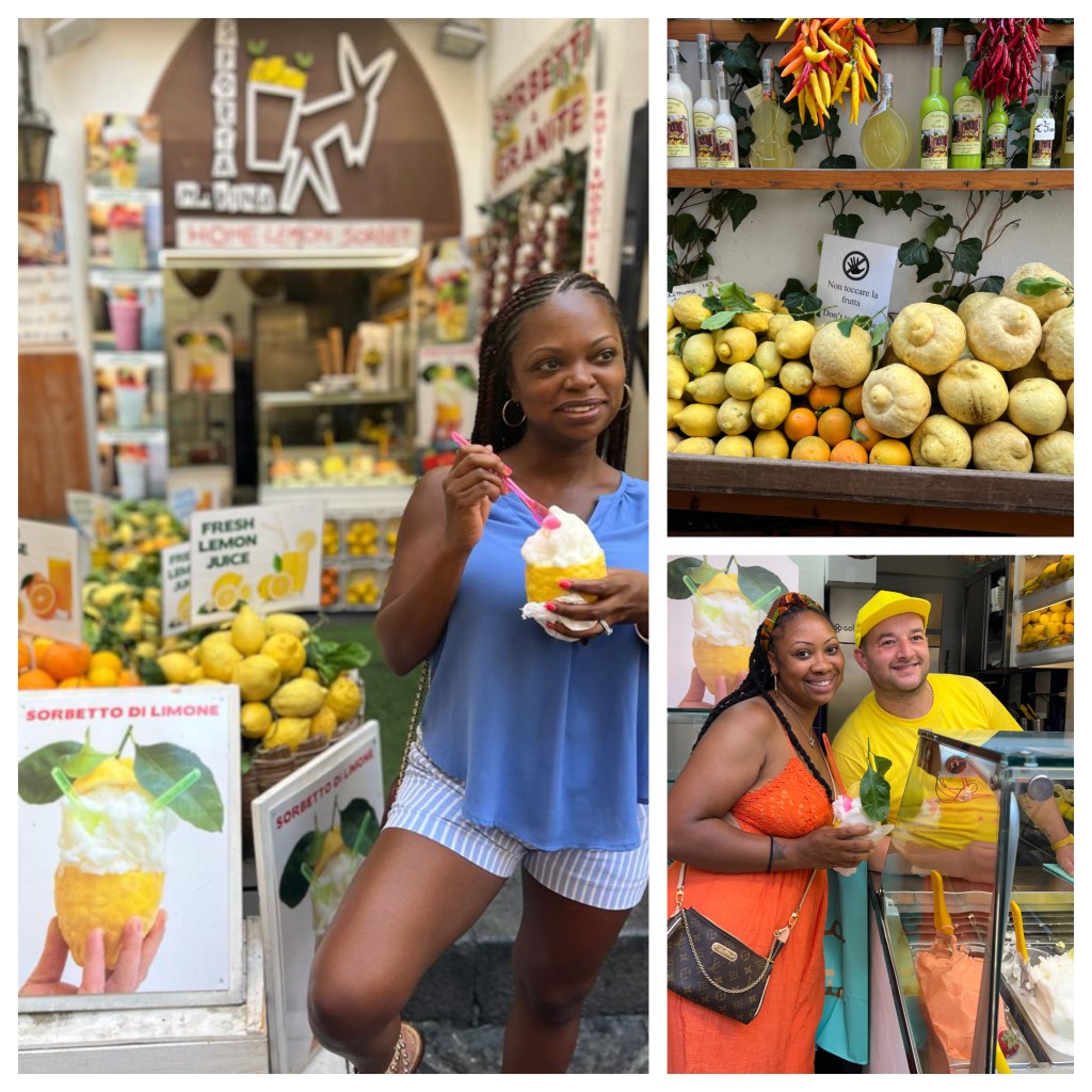 Our last stop was at Salvatore Milano’s fruit stand. This guy was even funnier than the boat captain at the grotto! He was completely enamored by my sister, Shevonne, and helped her pose with his fruits and even gave her a free fruit juice. He even yelled at some other tourists because they were messing up our photos. Chivalry isn’t lost after all!