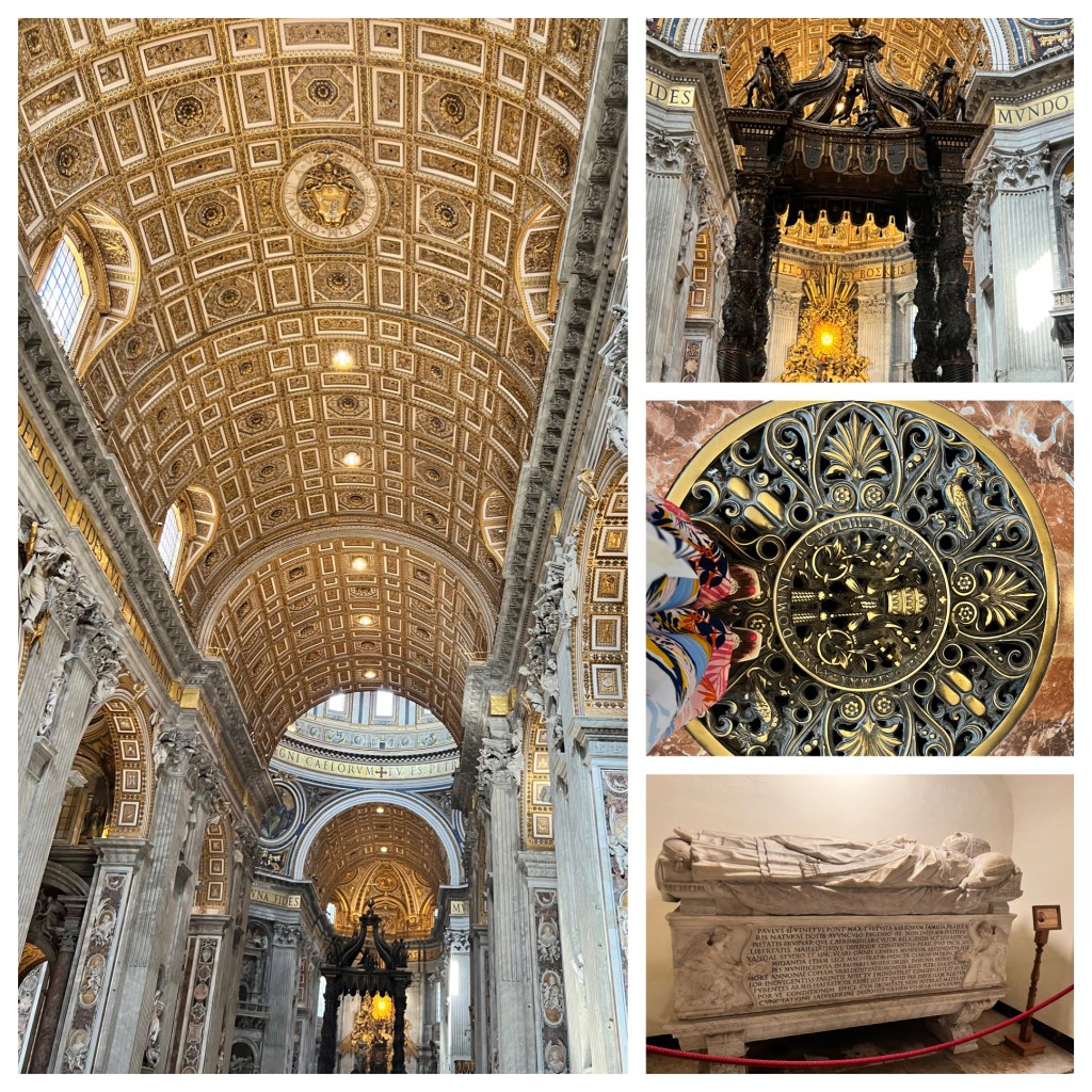 Luckily (sometimes it isn’t open), we were then able to take a shortcut to get to St. Peter’s Basilica, the largest church in the world. It was equally breathtaking. Visitors can climb to the top of the dome (and I read the views were incredible!) but our guide told us that it is hot and claustrophobic and given the 96-degree weather outside, he would recommend against it during this time of year.