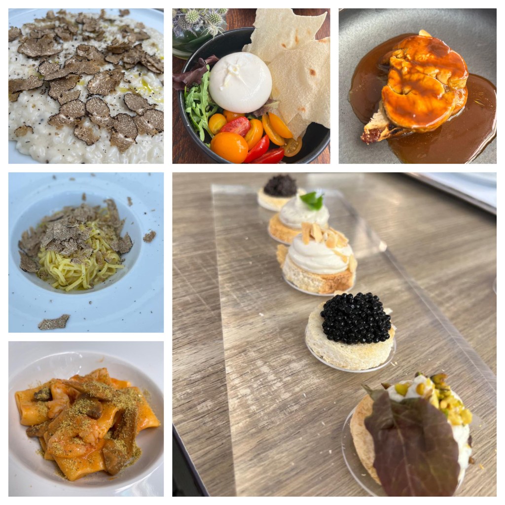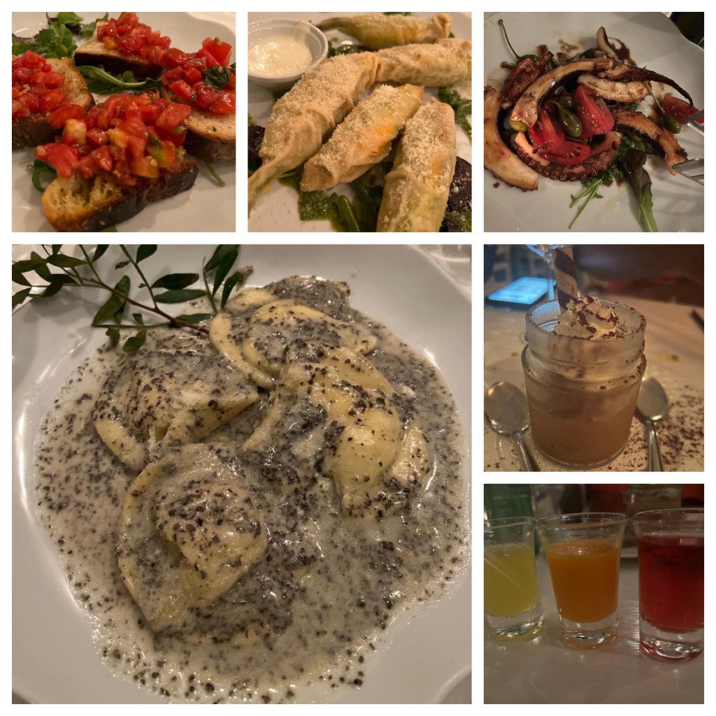 After a packed day, we arrived back home around 5:30pm. The 8-hour private tour was 430 euros for the full day and well worth it so we could go at our own pace. After a much-needed dip in the pool (it was blazing hot and we were drenched in sweat), we were ready for dinner. We had dinner reservations at Il Ritrovo and thankfully, they have a free shuttle service that does pick-ups and drop offs (key word there is “FREE”). We were seated immediately when we arrived and attempted to order half the menu because we were so hungry! The waiter was actually a little aggressive in response to this and asked why we were ordering 6 entrees when there were only 5 of us. Despite his shock and surprise, we were “allowed” to get everything we ordered and in no time was feasting on a tomahawk steak, truffle ravioli, zucchini blossoms, bruschetta, octopus, fresh fish, and more. Everything was delicious!