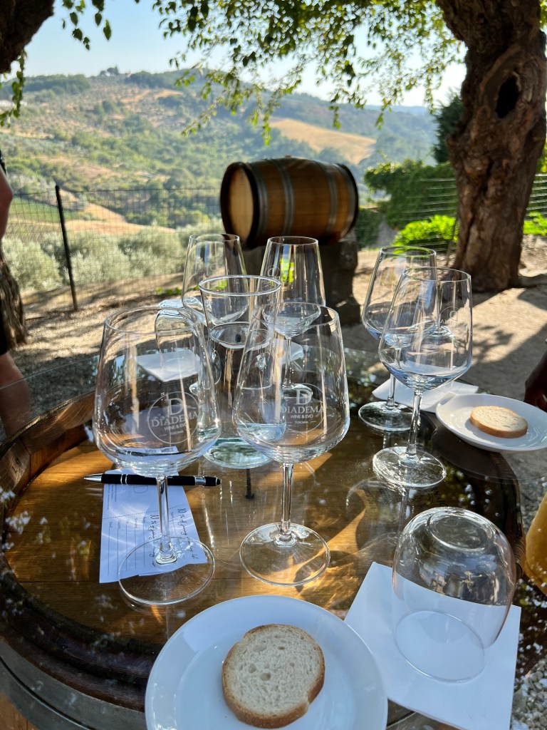 We also had a light dinner at the second winery that consisted of salami, cheese, olive oil with bread, bruschetta, olive tapenade on bread, and something that looked like soggy bread that we couldn’t figure out what it was. Everything looked way more appetizing than it actually was.