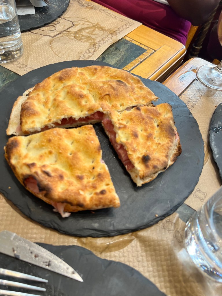 We were starving so we grabbed a bite to eat at nearby Ciampini restaurant where we ate a buffalo mozzarella, sausage, and mushroom pizza and tried a stuffed pizza with ham and cheese (picture a pizza sandwich). Natalie ordered a “milkshake” that ended up resembling (and tasting like) chocolate milk. Note to self: don’t ever order a milkshake in Italy!