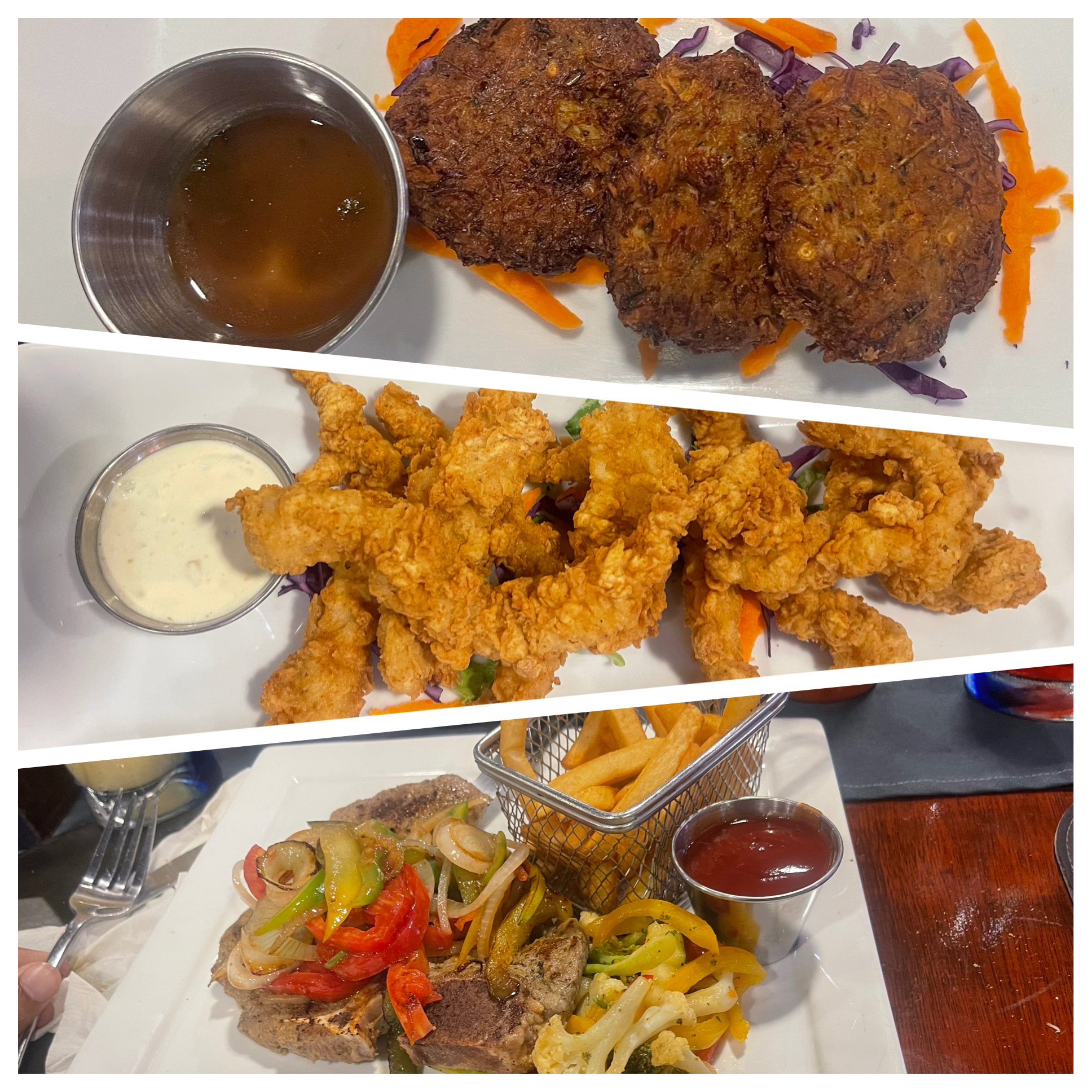 I started off the meal with a tamarind mojito which was super refreshing. We had conch fritters and crab cakes as an appetizer and I am happy to report that it wasn’t bready.