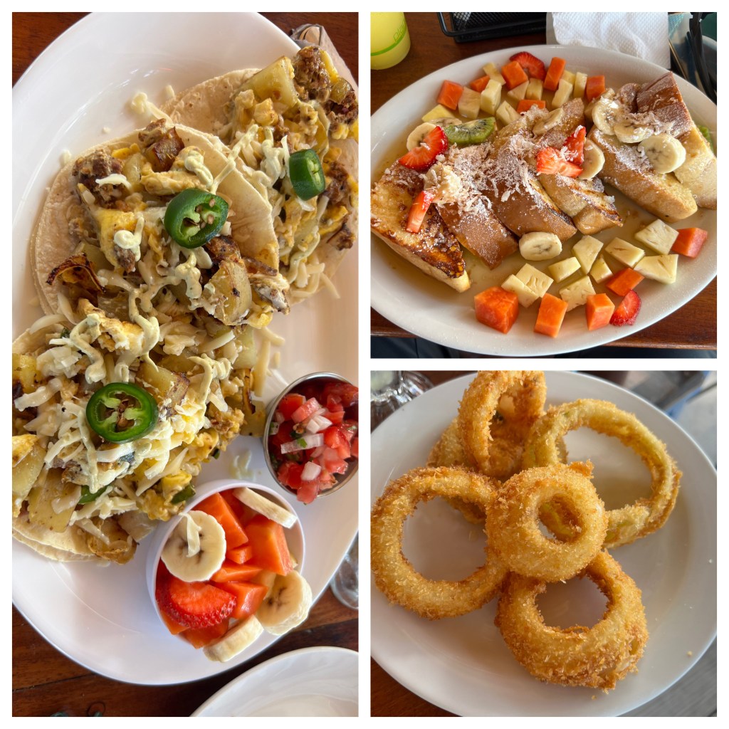 Tres Cocos: We passed this restaurant a few times during our stay so we decided to try it for our last breakfast on the island. They had a few unique offerings, including an eggs benedict waffle with pulled pork. I’m a sucker for an eggs benedict so I ordered that and it was good… except for the hollandaise sauce which was broken and too thick. Avery had the stuffed fry jack and Will had waffles stuffed with chicken which they both said was just mediocre. Note: the restaurant only accepts cash so make sure to have some handy if you eat here!