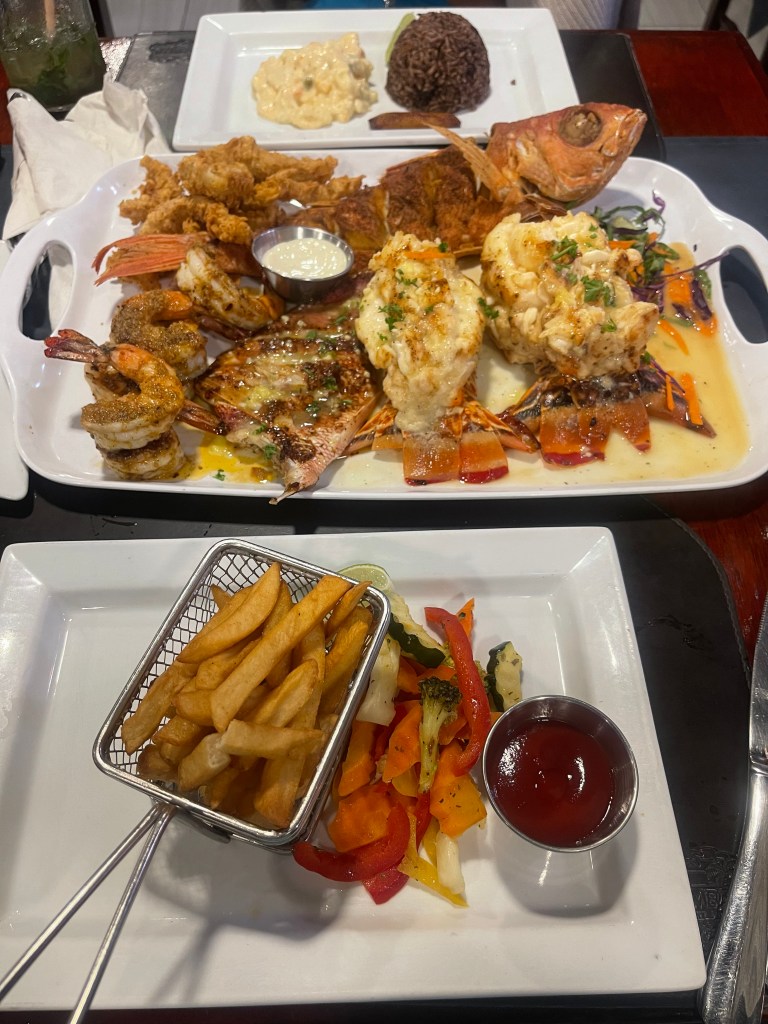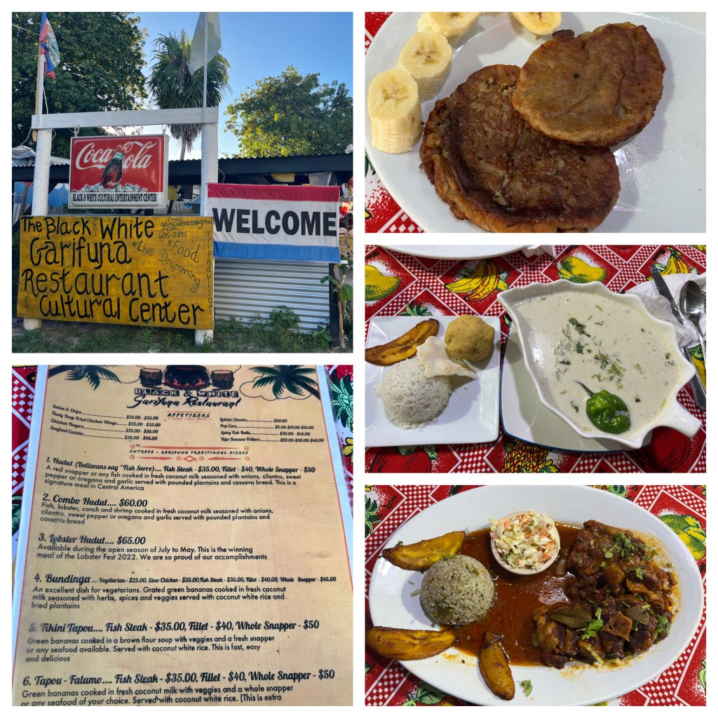 Garifuna Cultural Center: This restaurant was high on my list. Although we were told to get there for 5pm, it should’ve been more like 6pm because the place was empty when we arrived. We started with banana fritters and chicken wings and then for our main courses, we had the combo hudut (a traditional dish made with fresh coconut milk and lots of seafood) and oxtail which were both very good. There was live drumming, dancing, and a lecture of sorts about the Garifuna people and culture. It was a culturally enriching experience and would highly recommend!