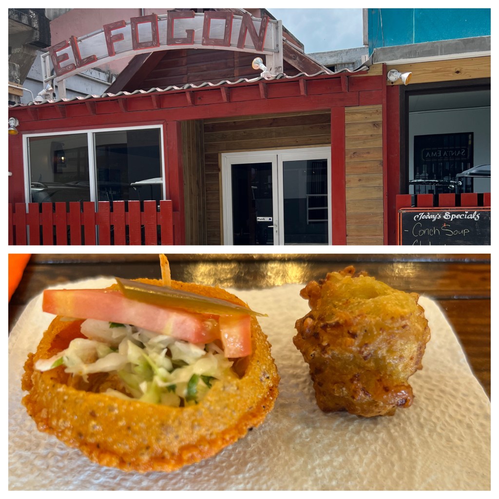 The fifth stop was El Fogon (a restaurant I already had on my list because they specialize in authentic Belizean food cooked by firewood in the open). We had a conch fritter and chicken salbutes (a crispy fried tortilla shaped like a disc filed with shredded chicken, tomato, onion, and jalapeno) and washed it down with a rum punch (of course).