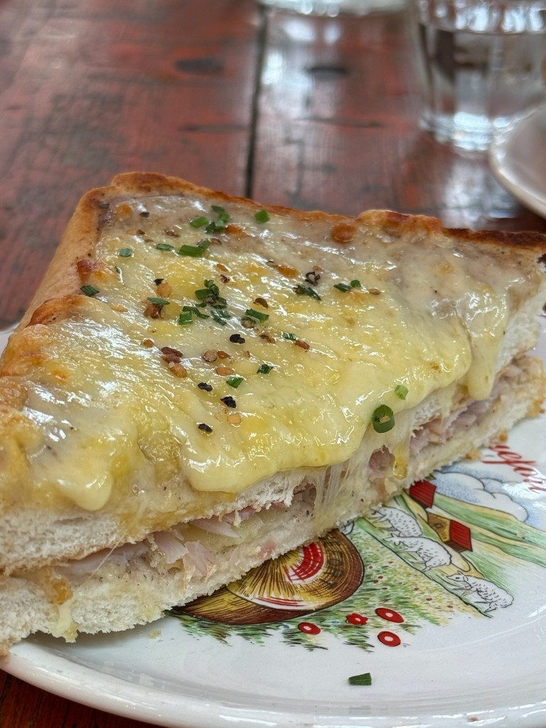 Stop 1: Funky Cellar – Our first bite was a croque monsieur—a warm, toasted ham and cheese sandwich with creamy bĂ©chamel sauce. Rich and delicious, it was a strong start to the tour.