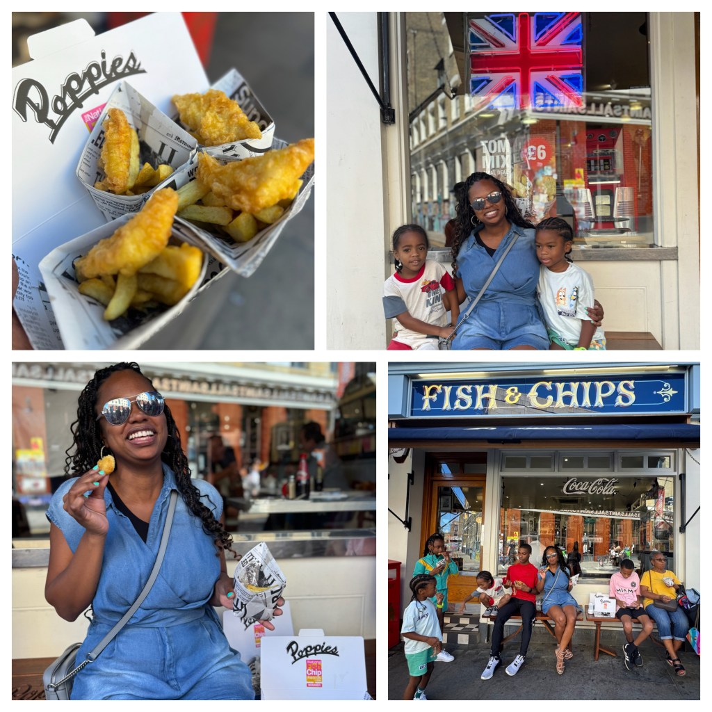 Since the first day was designed to be pretty low key to help get the kids acclimated to their new surroundings, the time difference, etc., my sister and I left the kids with my mom and went to a British grocery store called Sainsbury for some essentials for the house. Since no one felt like venturing out for dinner, we went to Maureen’s Kitchen, a local spot literally located in the back of Maureen’s house. Everything is cooked in her own kitchen, and there’s a small outdoor eating area. We ordered the platter which comes with three meats (we tried the curry goat, sweet chili chicken, and oxtail), peas and rice, plantain, coleslaw, and macaroni pie. We actually met Maureen and chatted with her for a bit. I had high hopes because I heard such good things about the food, however, nothing lived up to the hype…except for the mannish water, which reminded me of goat water from Nevis. That was SO good!