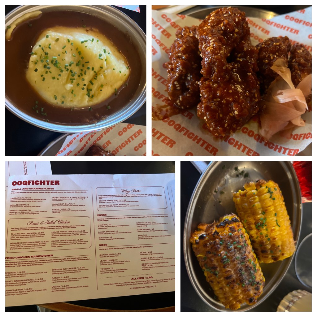 After escaping Hamleys with our wallets only slightly damaged, we wandered around Oxford Circus looking for somewhere quick to eat. We ended up at Coqfighters, and was not disappointed. We ordered wings, mash with gravy, and corn on the cob. Everything was flavorful, affordable, and surprisingly satisfying for a quick stop.