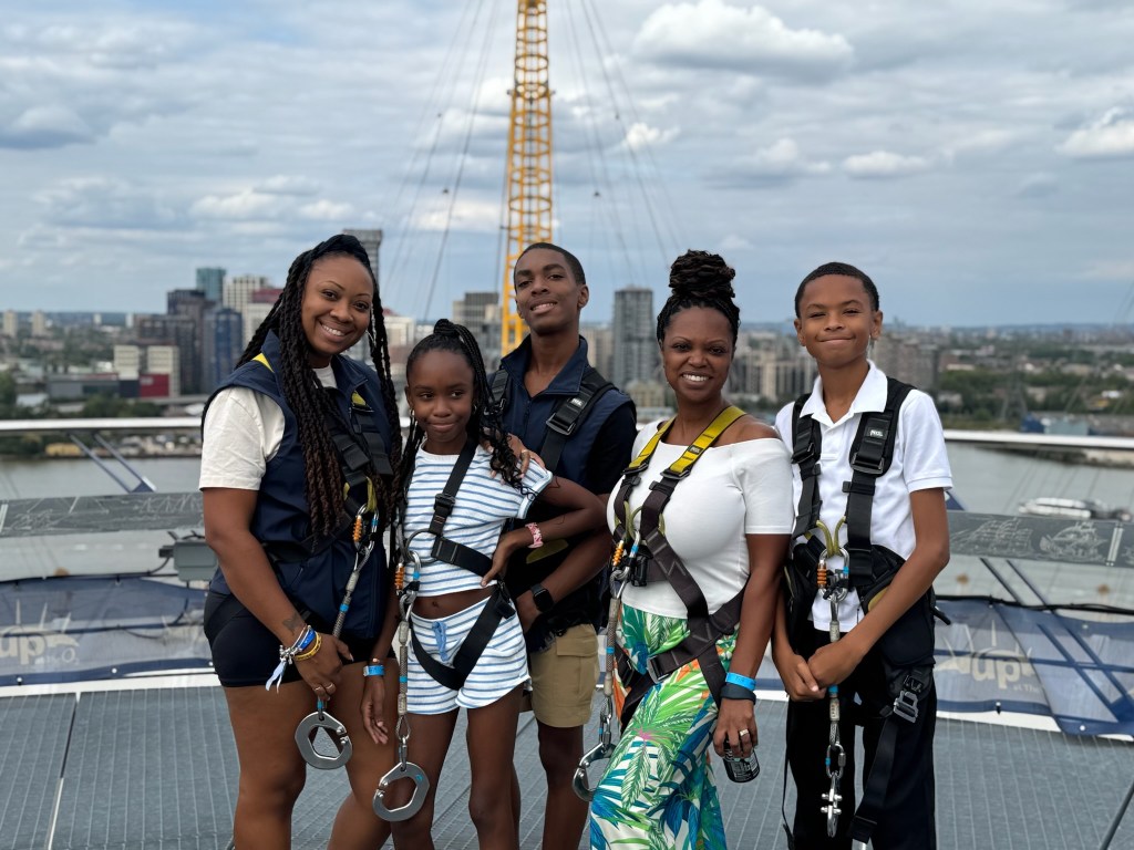 Next on the list was Climb at the O2. The O2 Arena is essentially London’s entertainment dome, and yes, you can actually climb over the top of it. After a briefing video and getting strapped into our harnesses, we made the 90-minute ascent (longer than I’d imagined!) and enjoyed fantastic views from the top. They provide the climbing shoes, but you do need to bring socks. The minimum age is 8 years old and for climbers aged 8–17, there must be at least 1 adult per 5 children. Since the littlest ones were too young for this activity, my mom stayed with them outside. There is actually so much to do in the immediate area, I figured they wouldn’t be bored (though after a quick snack, she reported that they both fell promptly asleep, lol).
