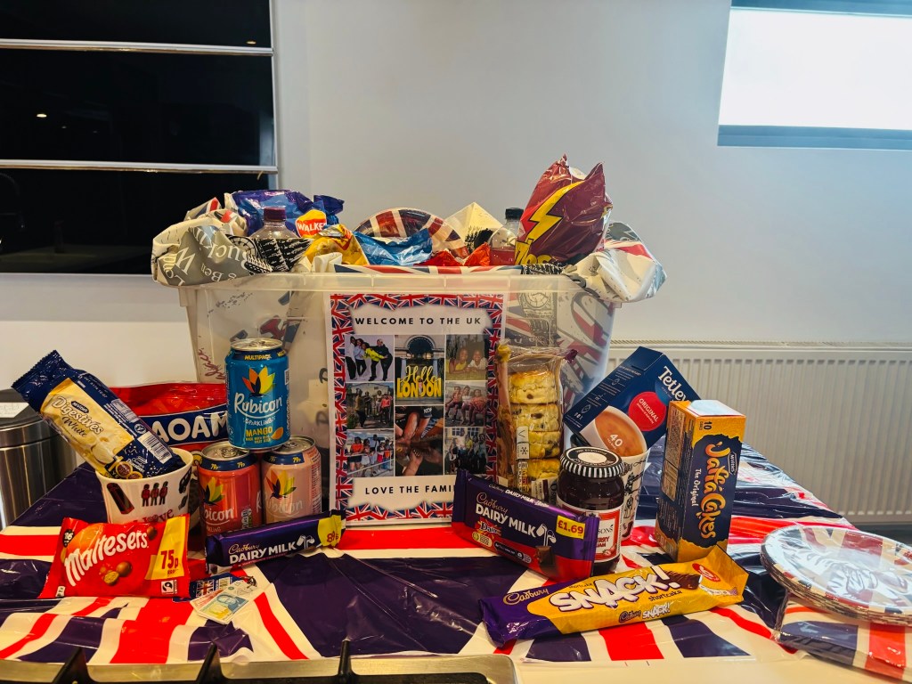 The highlight of our lunch was our cousins popping up at the restaurant! It was a total surprise and so good to see them! And then when we got back to the AirBnB, there was a thoughtful gift basket full of British goodies and snacks from them!