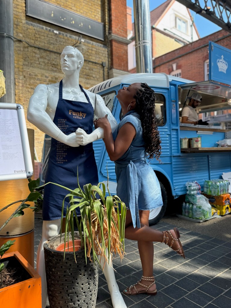 One of the big things on my London bucket list was experiencing Notting Hill Carnival, and not just watching from the sidelines. I wanted to play mas (per usual). Months before the trip, I registered with the Reign Mas band and prepaid for my costume, which was scheduled to be ready a few days before Carnival. Picking up the costume sounded simple enough… until it wasn’t. We took an Uber from Brixton all the way to Dagenham, which took about an hour. Then we waited another hour for the costume to actually be handed over. Then, another hour back to Brixton. Three hours for one costume! Despite us being gone so long, when my sister and I returned to the Airbnb, no one was ready and they were all moving at glacial speed, so we didn’t leave again to really start our day until around 2:30 pm.