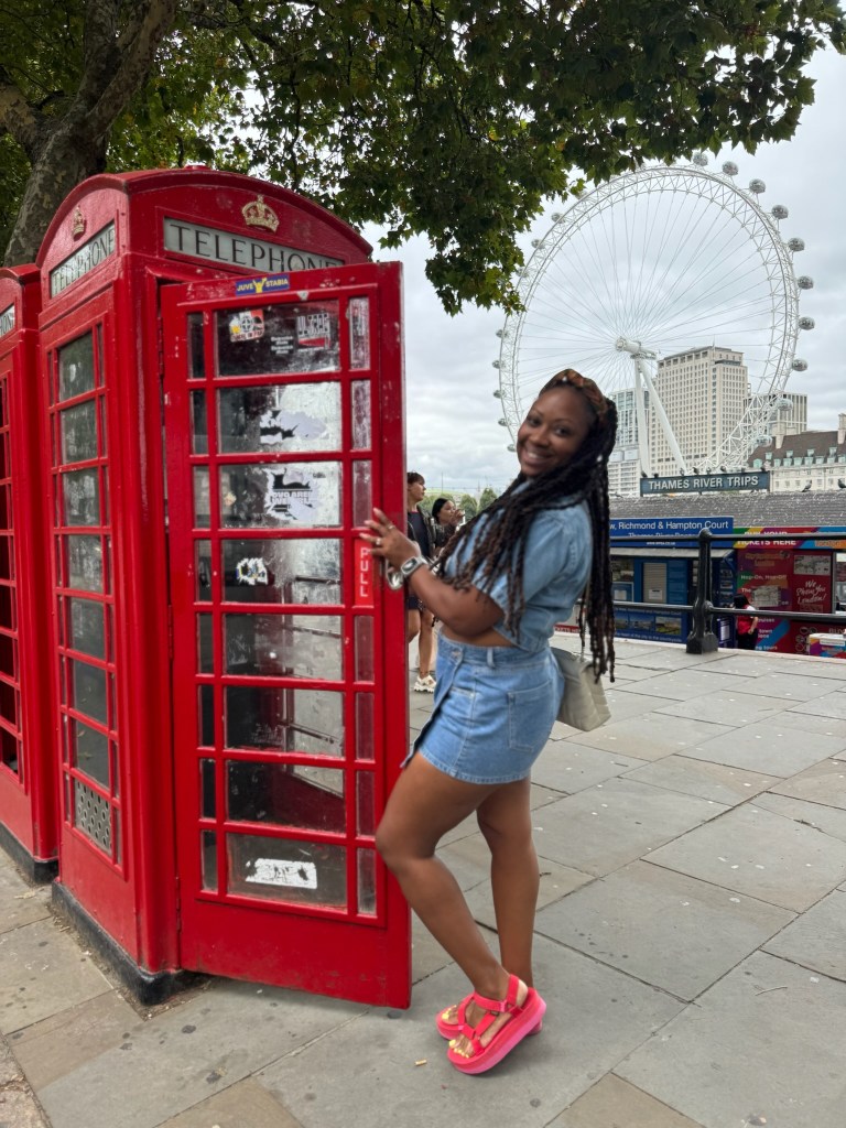Then, we walked to Victoria Embankment, a riverside promenade along the Thames River. While there are plenty of red phone booths scattered across the city (and we probably passed three other on the walk over!), I wanted to go to Victoria Embankment for the photo so I can capture the London Eye in the background 🙂