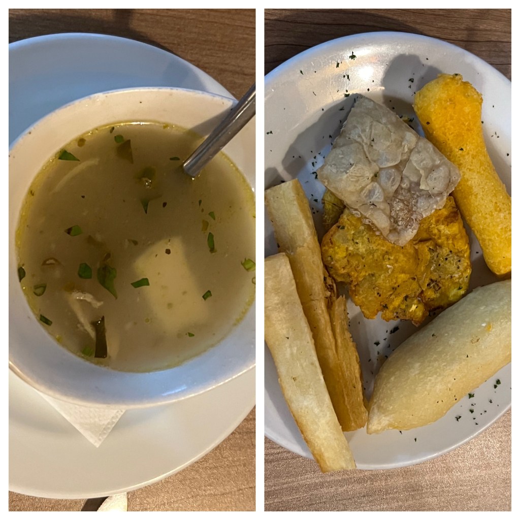 Dinner is served as a set menu with two options, featuring classic Panamanian dishes. My mom and I got different options so we can try everything.