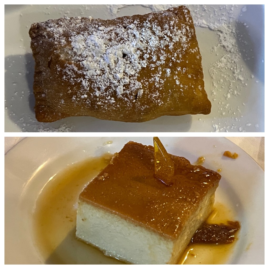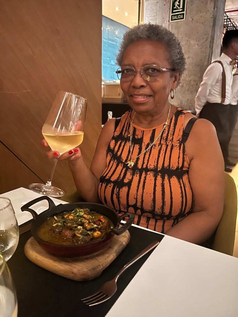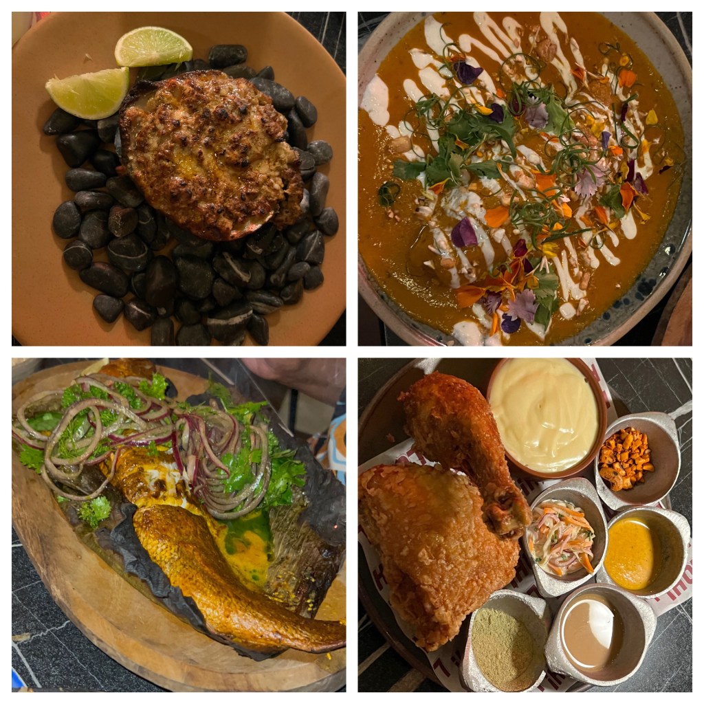 We also dined at Fonda Lo Que Hay for dinner. On the list of Latin America’s 50 best restaurants, I had very high expectations before arriving. To drink, I had the El Comandante (Seco Herrerano – Piña y Cardomomo – jugo de Limón Persa) which was really good (and it didn’t hurt that it came in a personal bottle!). CJ had the fried chicken accompanied by mashed potatoes and although the texture was a bit too watery for either of our liking, the gravy was delicious. I had the bollo prenao which was some sort of maize outside with Octopus stuffing and sofrito cream sauce. It was a bit too starchy and thick for my liking but the sauce was flavorful. I also had charbroiled oysters but definitely a surprising prepared though it tasted ok. My mom had the roasted whole fish of the day (which was bass) and it was sooo good. They set it on fire and that was the icing on the cake. Needless to say, there was nothing left after we finished with it!