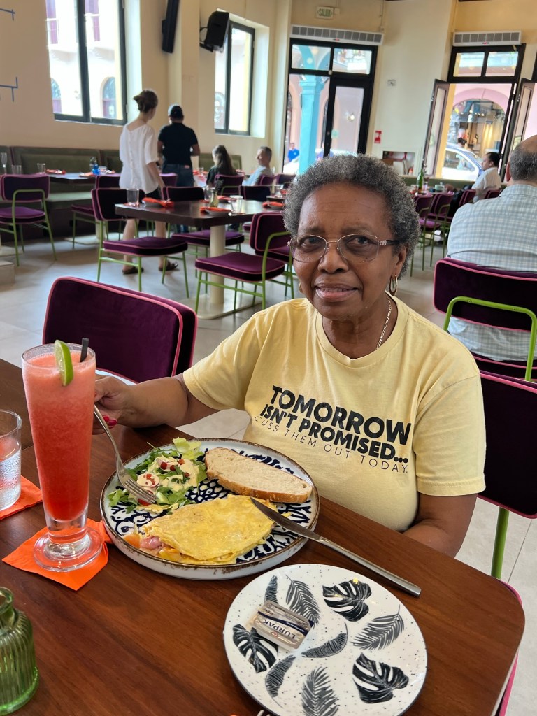 We kicked off our first morning at Tántalo Kitchen, tucked inside the eclectic Tántalo Hotel. I went all in on the Tántalo Lover’s sandwich—layers of fried egg, bacon, smoked ham, gouda, tomato, mustard, caramelized onions, and their signature sauce, all hugged by perfectly toasted sourdough. CJ dove into a plate of chicken and waffles, and my mom ordered the Tántalo omelet. Every dish hit the mark and was rich with flavor for a simple breakfast.