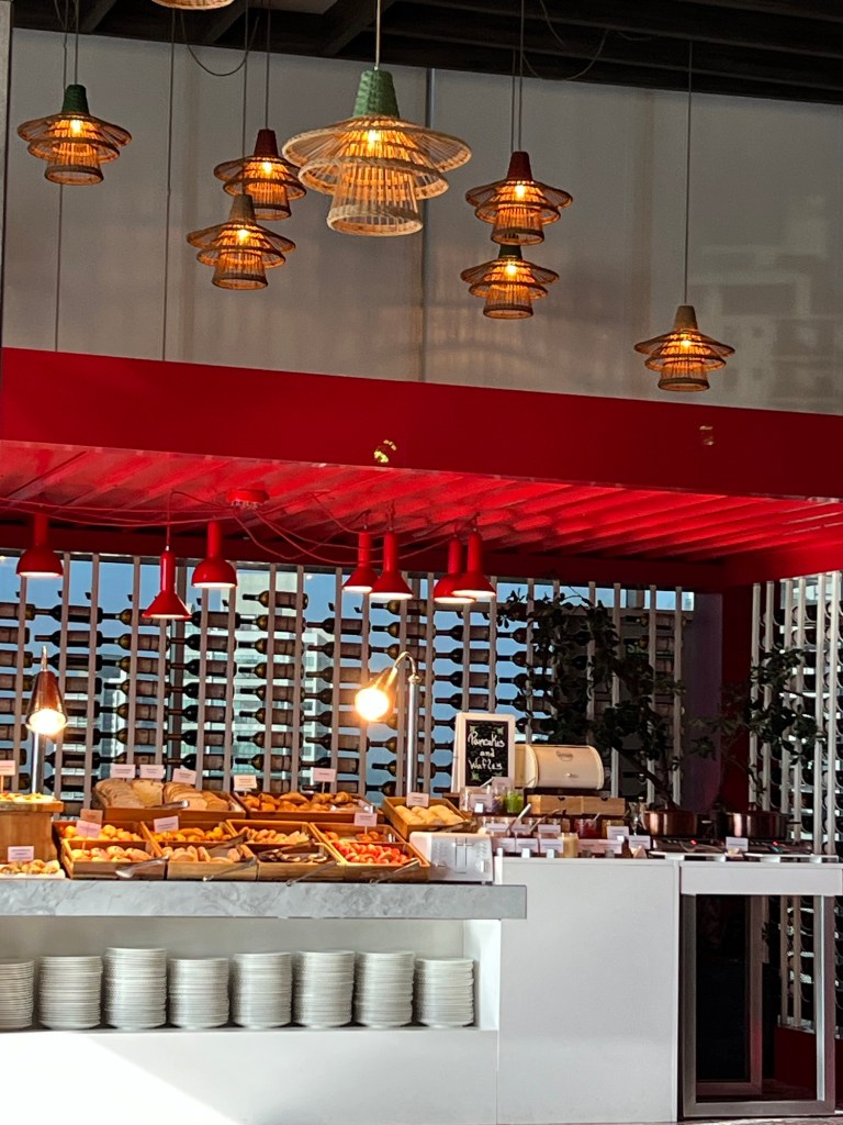 On our second day, we had breakfast at Caleta, tucked inside the elegant Sofitel Legend in Casco Viejo. I ordered the eggs Benedict with smoked salmon and CJ went straight for waffles with a side of sausage. My mom pieced together her own à la carte plate of scrambled eggs, bacon, and toast… which, in a funny twist, ended up costing more than the full breakfast sets on the menu. The food itself was good, but the atmosphere leaned a bit stuffy and the prices definitely reflected the hotel’s luxury status.