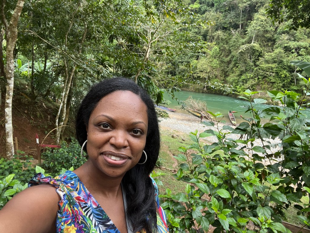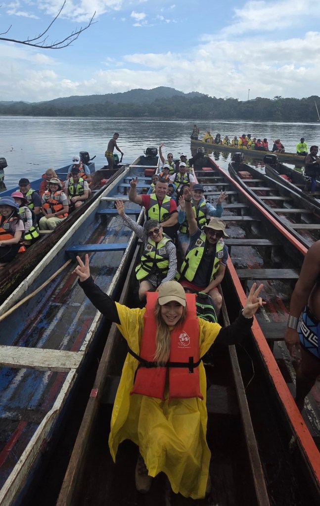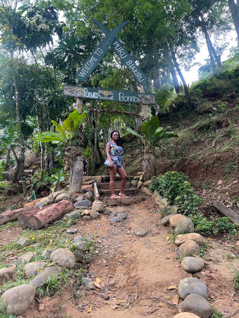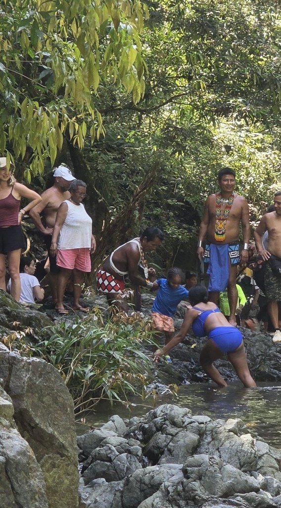 One of the most memorable cultural experiences of our trip was visiting an Emberá village in the rainforest outside Panama City. It was a full day adventure — about seven hours total — and felt worlds away from the city skyline. We were picked up at 7:30 a.m. and drove about an hour north, with a quick supermarket stop to grab snacks and water. From there, the real adventure began.