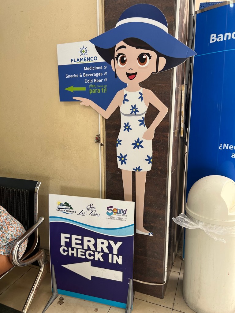Right outside the marina, near the colorful Panama sign by the boats, we caught our ferry with Taboga Express. Tickets were $15 each way for adults and $9 for kids. Departures run on a set schedule, and we chose the 11:00 a.m. sailing. The ride itself took about 30 minutes. There is also some shops to buy beach toys and snacks if needed.