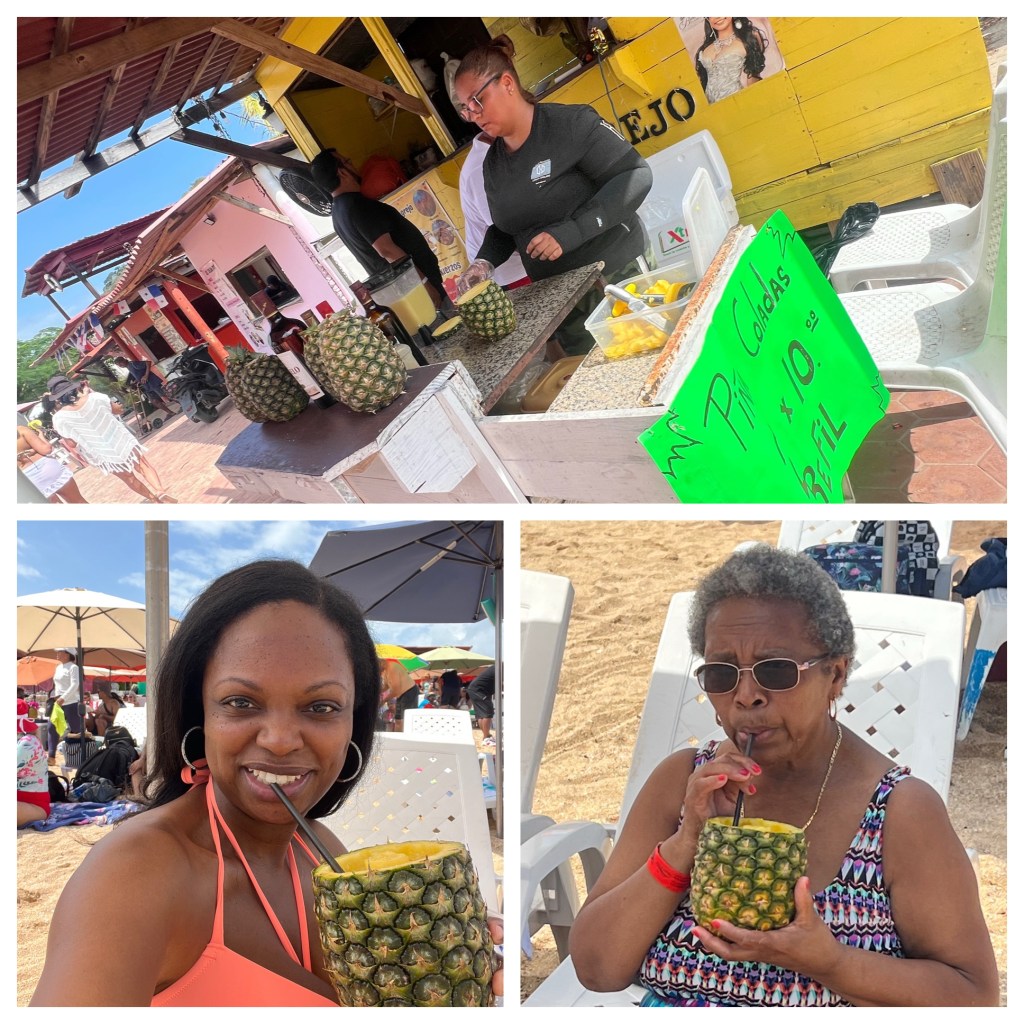 The water wasn’t the clearest we’ve ever seen (though I’ll admit, I can be a bit of a beach snob which is ironic, considering beaches aren’t really my thing), but we enjoyed a couple of relaxed hours in the sun. Getting drinks or food was easy since there were shops right behind the beach so I secured some piña coladas — two for $10 with free refills, which felt like a steal.