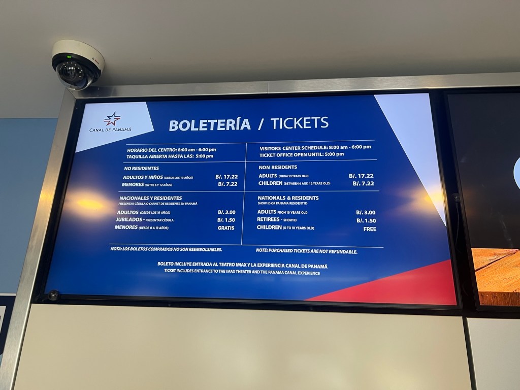 Admission for two adults was $34, and CJ was free. Inside the visitor center, there’s a café with snacks and drinks, which is helpful if you’re waiting between ship transits.